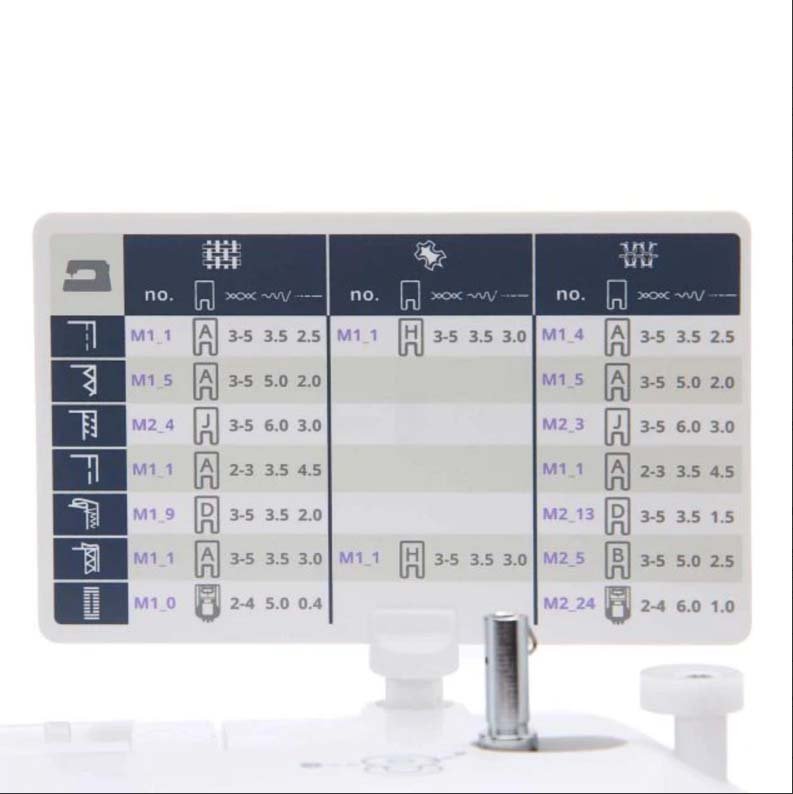 max. druhov automatickej gombíkové dierky šité na jeden krok 8 pätiek v základnej výbave Nastavenie pozície ihly hore/dole 15 pozícií ihly Rýchloupínací systém pätiek Horizontálny rotačný chapač - umožňuje ľahkú výmenu cievky spodnej nite Automatický navliekač hornej nite - možno naprogramovať alebo použiť nite Orez nite na bočnom kryte stroja Dvojitý zdvih pätky Voľné rameno Nastavenie rýchlosti pomocou posuvníka Tlačidlo Štart/Stop Tlačidlo pre šitie späť Automatické zapošitie Vysoká rýchlosť šitia - až 1.000 stehov za minútu Extra silný vpich ihly do materiálu Praktická tabuľka s nastavením stehov , napr. pri voľnom quiltovaní, vyšívaní a prišívaní gombíkov Osvetlenie pracovnej plochy LED