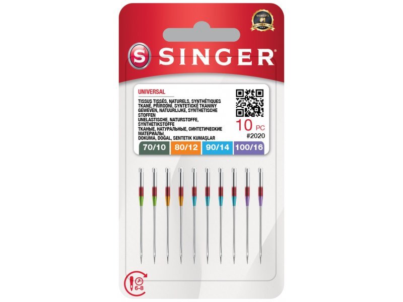 Ihly univerzálne pre domáce šijacie stroje Singer, sila 2x70 / 10, 2x80 / 12, 4x90 / 14, 2x100 / 16