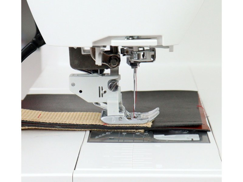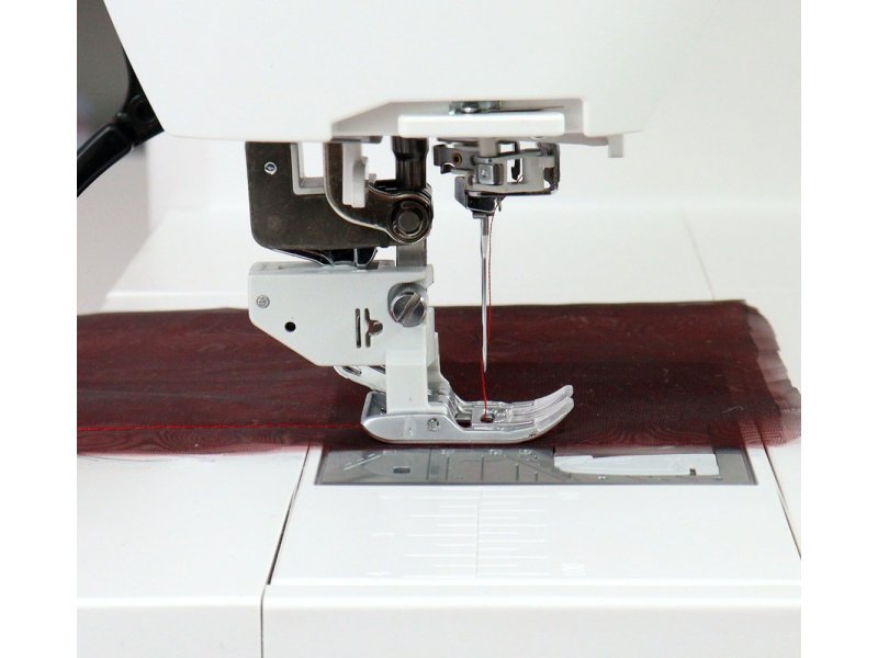 - Extra vysoký zdvih pätky zaručuje pohodlné vkladanie aj vysokých vrstiev látky