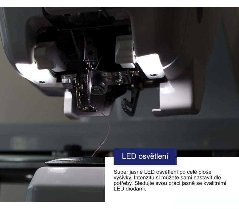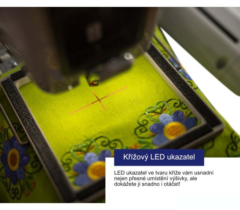 - Nový typ LED ukazarele pre presné umiestnenie výšivky na plochu - LED kríž , ktorý umožňuje trafiť aj otočenie výšivky