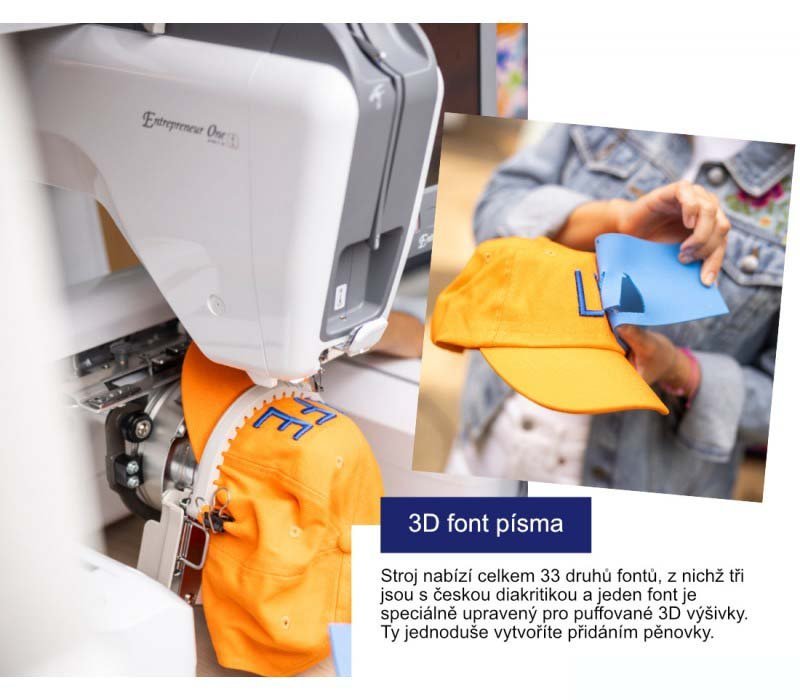 - Ovládanie stroja na displeji je česky a navyše má stroj aj české fonty priamo v základnej výbave!