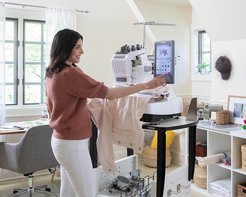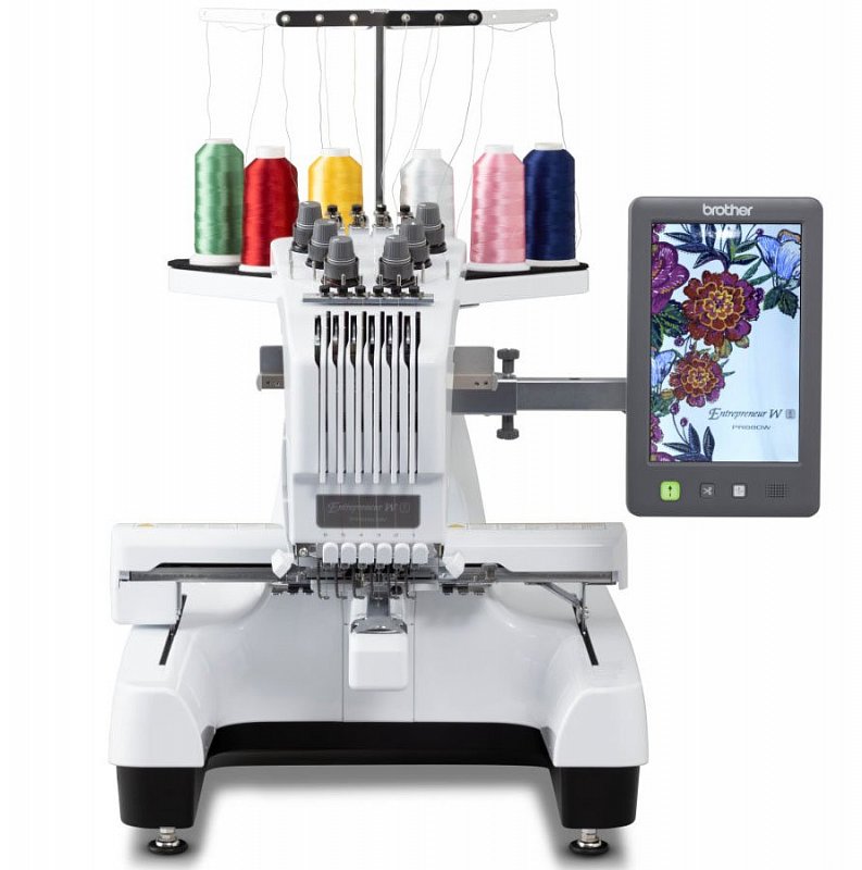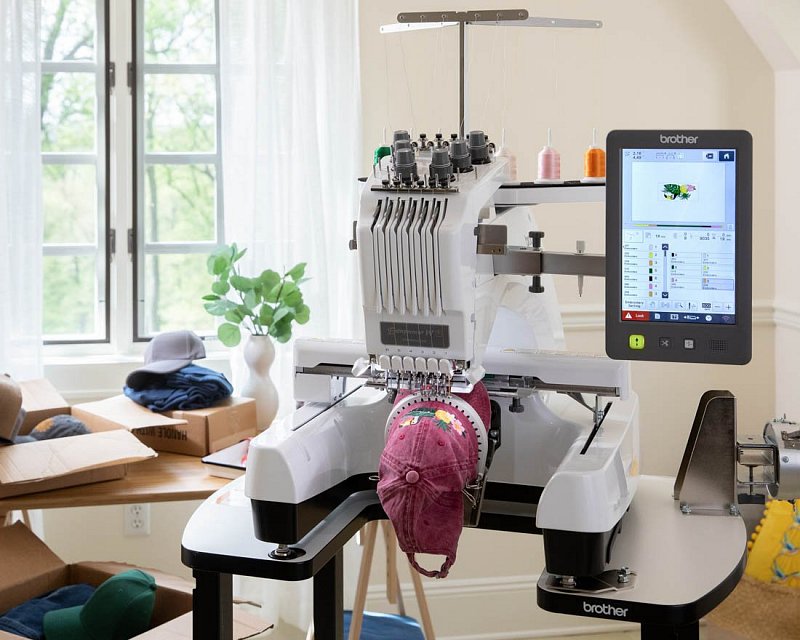 Kompaktný šesťihlový profesionálny vyšívací stroj s úzkym ramenom japonskej firmy Brother