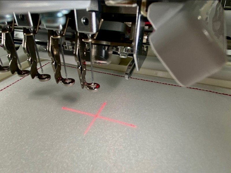 - Nový typ LED ukazovateľa pre presné umiestnenie výšivky na plochu - LED kríž , ktorý umožňuje trafiť aj otočenie výšivky