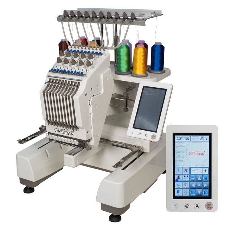 Desetibarevný ramenový Jednohlavový univerzálny vyšívací stroj určený pre kusovú aj malosériovú výrobu a vzorovanie. Ideálne pre módne výrobky, mikiny, reklamné výrobky, pracovné odevy, tričká. Stroj môžete postaviť aj na váš pracovný stôl.