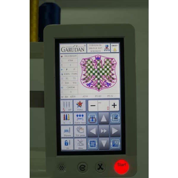 - Duálny procesor (CPU) umožňuje importovať aj exportovať vzory do stroja, aj keď práve pracuje. Funkcia "Lettering" umožňuje vytvárať nápisy priamo na displeji stroja, bez nutnosti pouziti programu pre tvorbu výšiviek. Eventuálne pretrhol nite je detekovaný a stroj je okamžite zastavený. Návrat na miesto pretrhu je veľmi rýchly a presný.