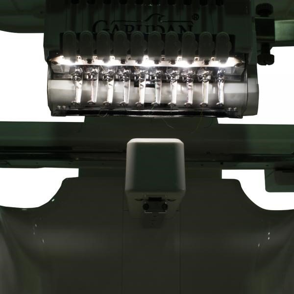 10-tich ihlový ramenový vyšívacie stroj, vhodný pre vyšívanie na plocho, čiapky / klobúky (220 °), hotové odevy a ďalšie výrobky. Stroj ideálny pre domáce i priemyselné vyšívanie. Dokáže vyšívať rýchlosťou až 1000 stehov / min.